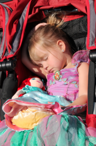 As you can see, we would NOT have made it thru Disney without a stroller! Loading up and trying to fly with my double stroller just didn’t seem feasible either. With three kids in tow, and tons of luggage, car seats, etc…I didn’t dare try to add one more thing. We needed a stroller that would hold upto to kids and one that we could pick up and use AT the park!
