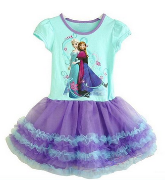 Pay just $17.11 for this Frozen Princess Elsa and Anna Dress Girl’s short sleeve Purple Tutu Dress!
