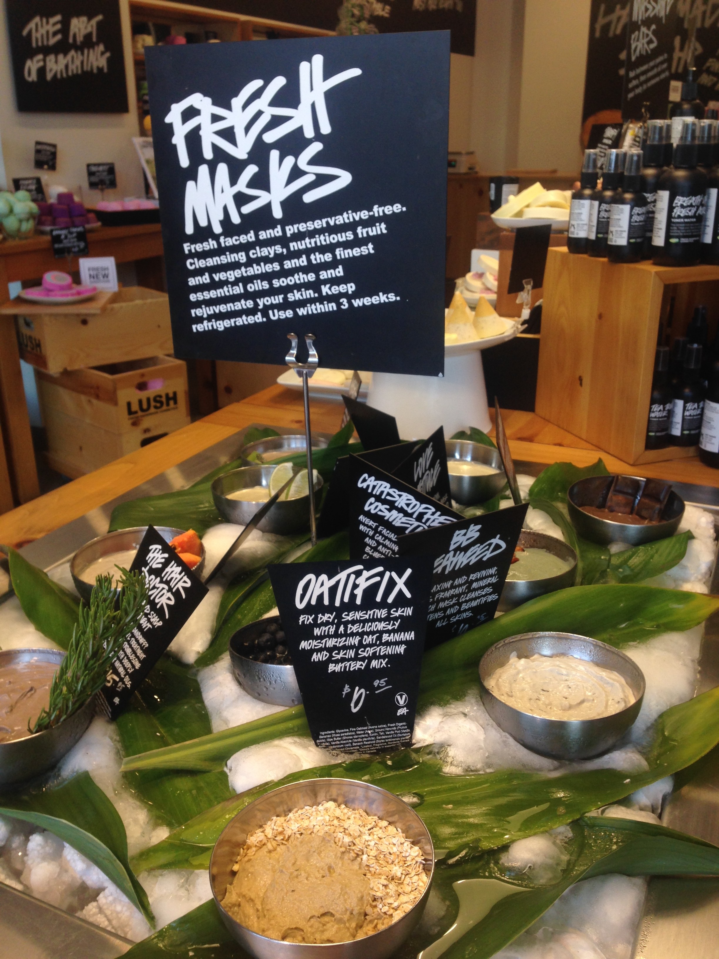 2. Face Masks – these are so fresh that they must be kept on ice or in the fridge. All natural and no extras! I had one applied on my face while I was instore and it was very nice!