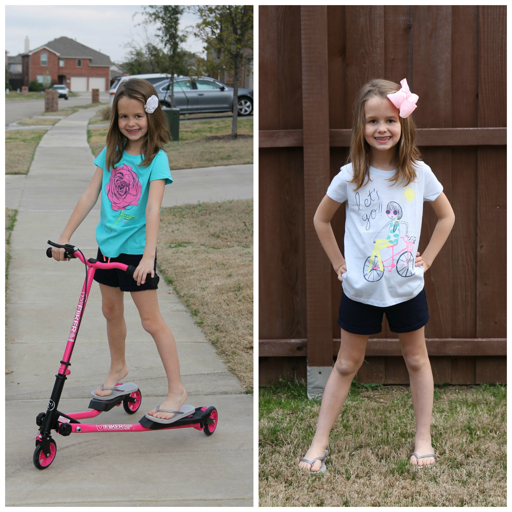 Spring is here and for my girls that means we need new clothes! We love when we get to put away our winter clothes and start wearing shorts! We are moving and grooving with spring sports and are enjoying more and more time outside! Time to put away the darker, winter colors and break out the bright spring colors! While you may know OshKosh for their classic denim and World’s Best Overalls, they have a whole new assortment of fashionable looks for spring that we LOVE! Emma loves modeling the bright, fun spring colors.