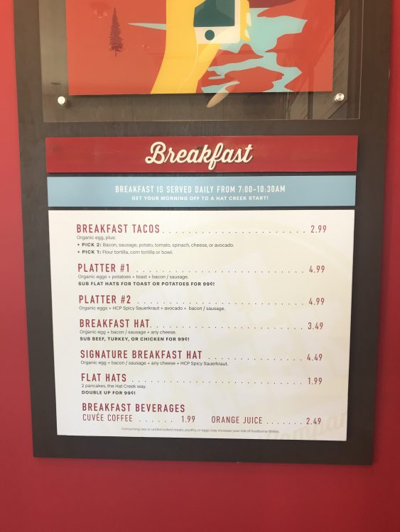 Mmmm…big hat burger and turkey burger. Breakfast sounds great too!