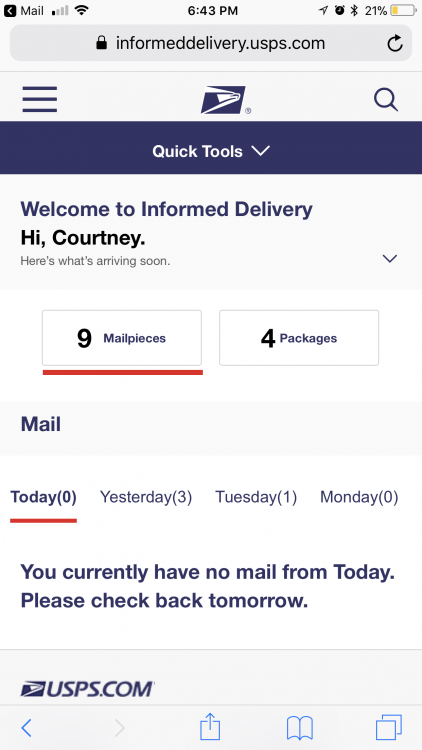 I love knowing what I am going to be getting in my mailbox each day… like snail mail. I don’t want to miss out on things and when I am expecting something important I like to know when it is coming! (Think checks, packages, etc!) I learned about an awesome service that the USPS offers and it’s FREE! Sign up for Informed Delivery and you will know what is in your mail box before it shows up!