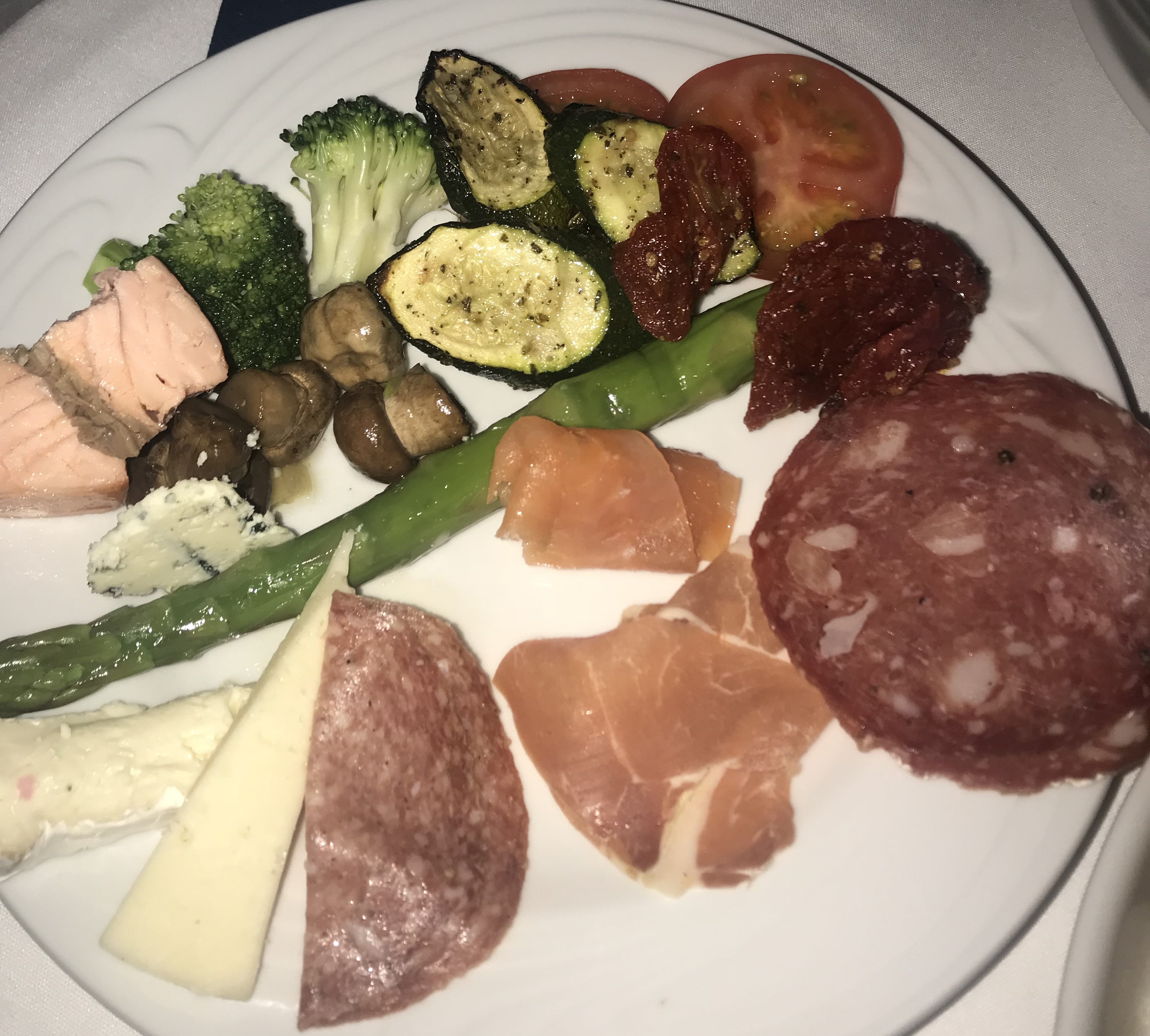 I had never been to a restaurant like this and didn’t know what to expect. He had! We were greeted and quickly seated where our fun experience started. The waiter explained to use that we would simply need to flip a coaster over if we wanted more meat! Servers are constantly making their way around the restaurant cutting off generous portions of meat. In the center of the restaurant was a market table fill of vegetables, salads, meats and cheeses.