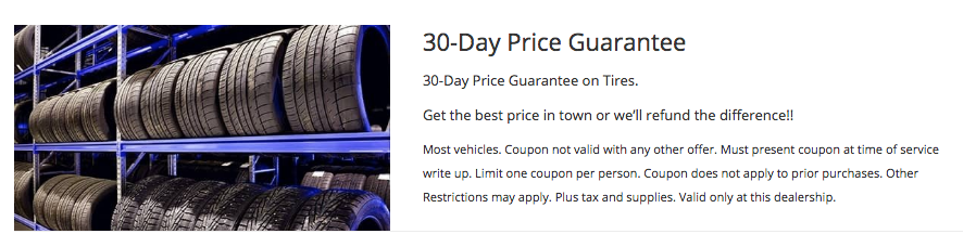 Jeep Cheap makes it easy! You can schedule your service online for easy drop off. As a challenge, if you have the time, shop around and see if you can find those tires cheaper. I love a dealership that will honor your time and give you the best deal like this one. This is what makes customers loyal, knowing that they will take care of you…even when you don’t have the time to look around. (Think about it, they wouldn’t offer this deal if they weren’t confident that they are competitive and are offering you the best deal!)