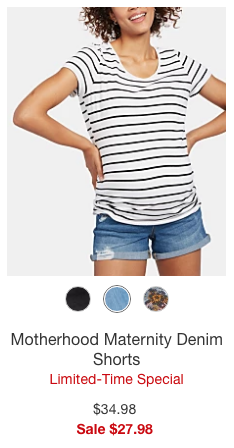 These shorts are priced nicely at just $27.98! I love the look of them and you have three different options for colors. (I wore maternity shorts during and after my last pregnancy…so comfy)