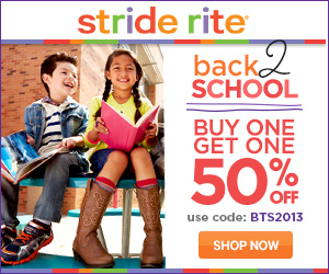 Don’t miss out on this awesome Buy One, Get One 50% Off sale at Stride Rite PLUS Free Shipping Valid 7.31.13 – 8.4.13.