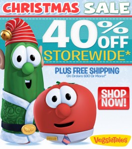 Right now you can save 40% off on your favorite Veggie Tales items…storewide! You will also get FREE shipping on orders of $30 or more! Stock up for Christmas!