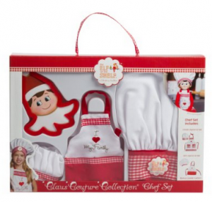 Hurry over and order this Elf on the Shelf Claus Couture Collection Chef Apron Set for just $21.06 today! Great price! Our elf, Joy, did some baking last night! Read over 100 more Elf on the Shelf ideas here!