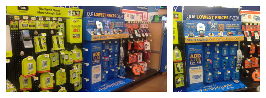 Look in the electronics department for the Walmart Family Mobile display and you can grab these deals on the following phones: