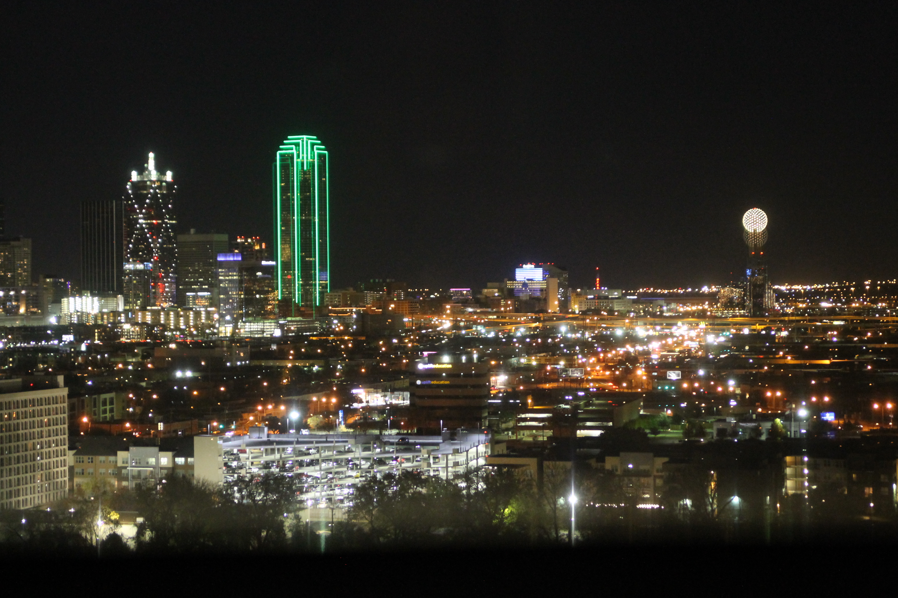 We had our photo taken with Santa and he was a jolly old man! The girls enjoyed seeing him and they wrote out their letters to bring back to him. After 3-4 hours of play, we were worn out and retired to our room for the evening! In our hotel room, we had the best view of Dallas! We could see almost all major landmarks. We enjoyed the view during daylight hours, but REALLY loved them at night! Seeing Reunion Tower lit up is always fun!