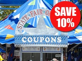Gear up for the State Fair of Texas early and SAVE. From August 1 through August 31. Purchase general admission tickets and season tickets at a discount. Coupons (used for food and rides) are sold at a 10% discount online only during the month of August. Purchase tickets and coupons online today.